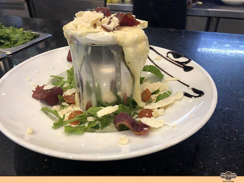 Choose your pasta (Spaghetti, Penne, Farfalle, Tagliatelle) and it is served after dipping in a wheel of parmigiano.